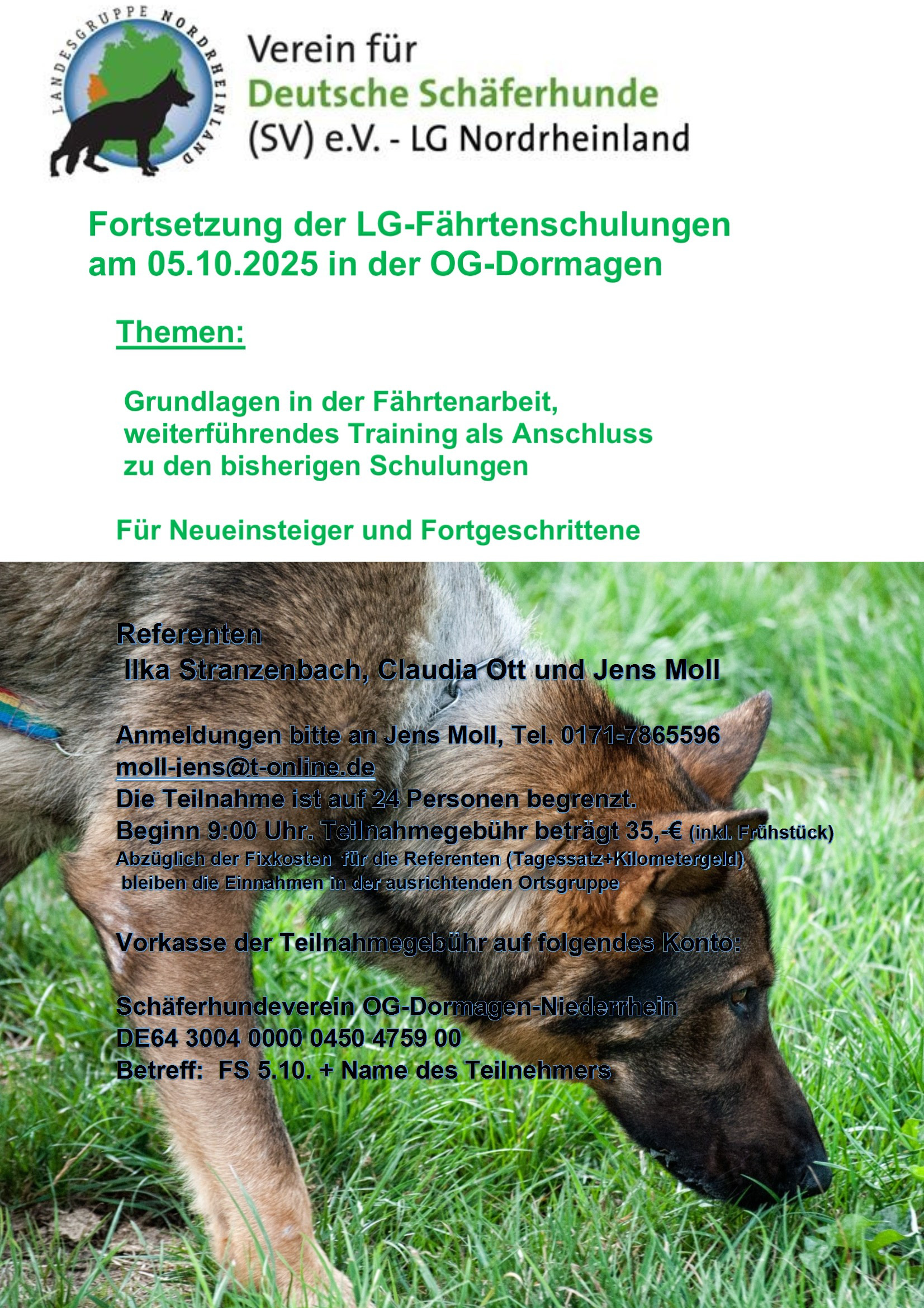 Grundlagen in der Fährtenarbeit, weiterführendes Training als Anschluss zu den bisherigen Schulungen.