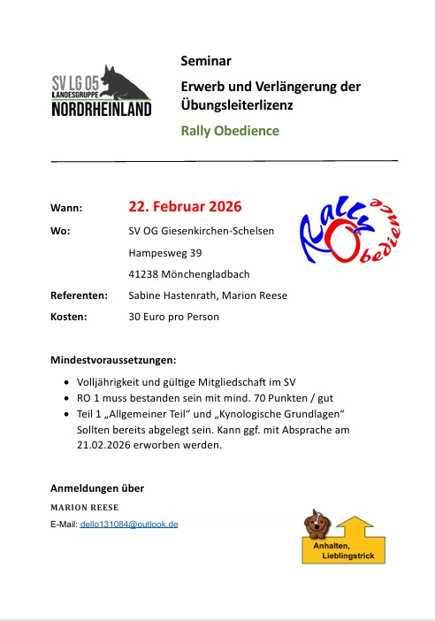 Seminar "Erwerb und Verlängerung der Übungsleiterlizenz" Rally Obedience